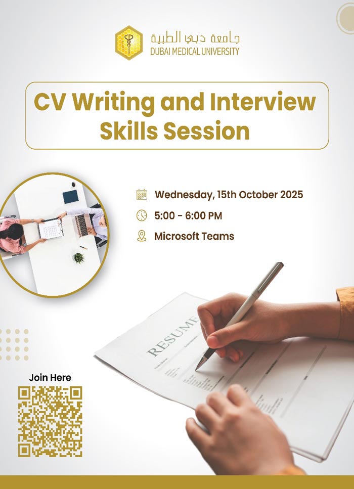 The College of Medicine, in its ongoing commitment to enhancing students career preparedness, organized an insightful session on CV Writing and Interview Skills, led by Dr. Leen Saleh, a distinguished graduate of DMU, College of Medicine.