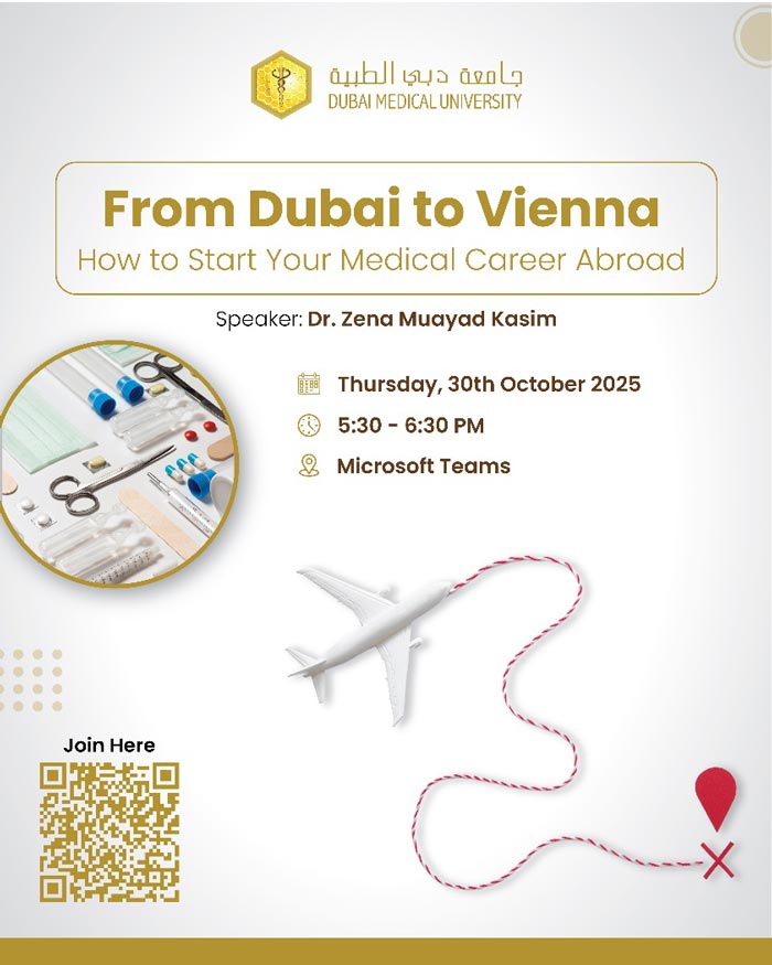 The College of Medicine, dedicated to nurturing globally competent medical professionals, organized a fruitful session titled “From Dubai to Vienna – How to Start Your Medical Career Abroad.”