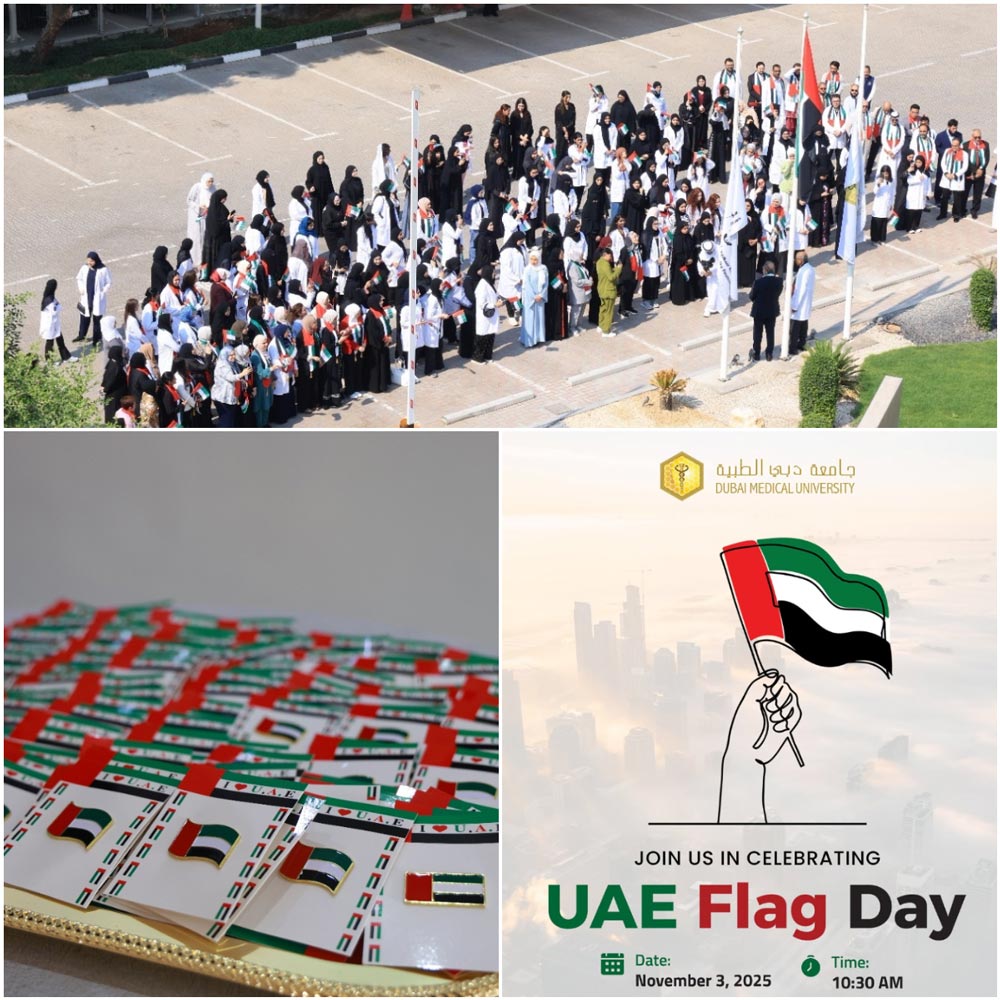 Dubai Medical University proudly celebrated UAE Flag Day 2025, bringing together students, faculty, and staff in a powerful display of unity and national pride. The event aimed to strengthen national identity within the DMU community and honor the values that the UAE flag represents.