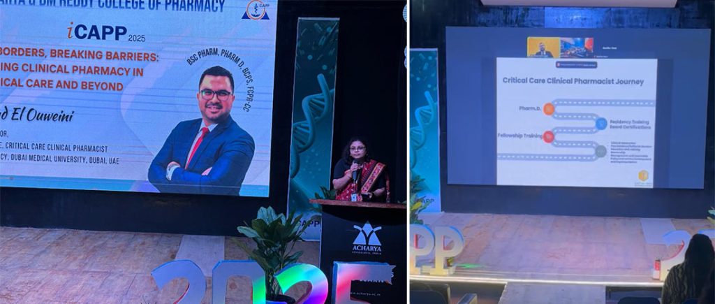 The College of Pharmacy at Dubai Medical University is proud to announce that Dr. Ahmad El Ouweini, Assistant Professor of Pharmacy Practice and Critical Care Clinical Pharmacist, has been invited to speak at the International Conference on Advanced Pharmacy Practice (iCAPP 2025).