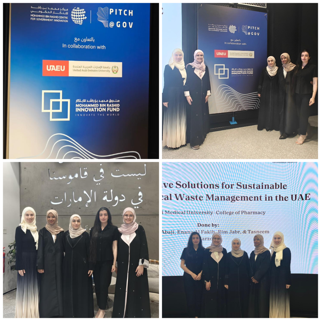 On September 13, 2025 A team from the College of Pharmacy at Dubai Medical University was selected among the top 12 projects across the UAE to present at the Pitch@Gov Competition, held at the Mohammed Bin Rashid Centre for Government Innovation, Emirates Towers, Dubai.