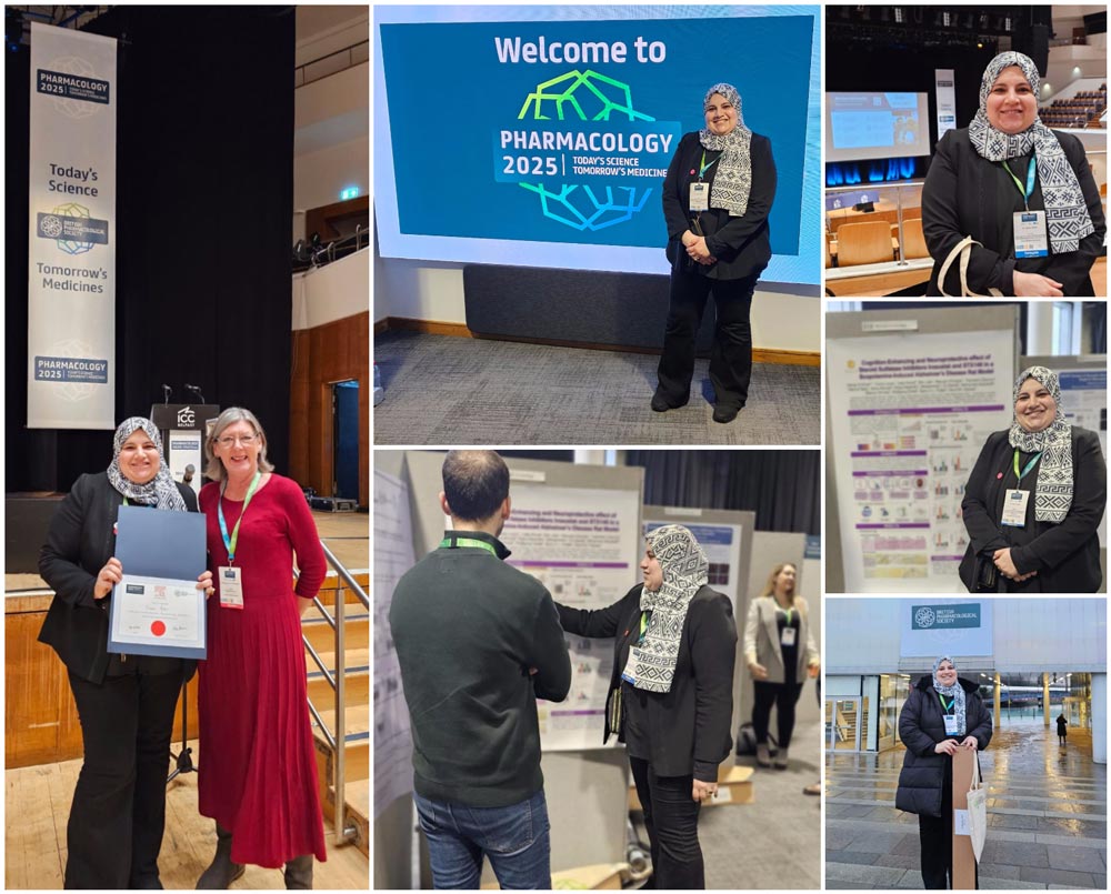 Dr. Hanan Anbar, Associate Professor at the College of Pharmacy, Dubai Medical University (DMU), has been awarded the Best Poster Prize in Neuropharmacology at the Pharmacology 2025 Conference, organized by the British Pharmacological Society (BPS), one of the world’s largest and most prestigious societies in pharmacology. The conference was held in Belfast, Northern Ireland, UK, from 16–18 December.