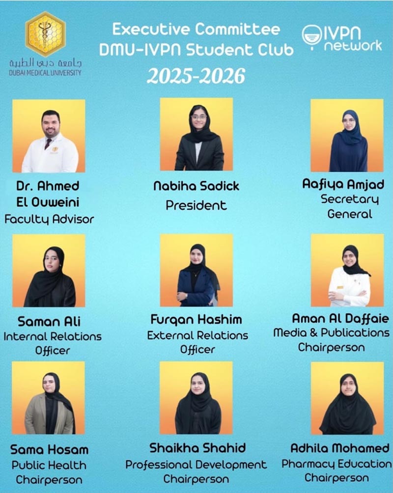 With renewed enthusiasm and strong leadership, the DMU–IVPN Student Club is set to continue empowering pharmacy students to become active contributors to the advancement of healthcare and the profession of pharmacy in the UAE and beyond.