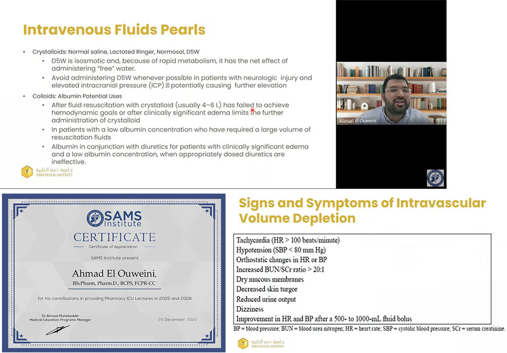 These educational activities reflect Dr. El Ouweini’s commitment to translating evidence-based medicine into practical clinical guidance for pharmacists involved in critical care settings. His lectures have been well received by attendees and are made publicly accessible through recorded sessions to further support continuous professional development.