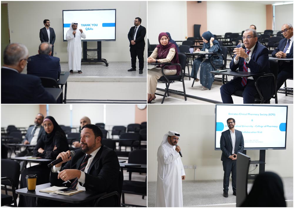 Dubai Medical University (DMU) – College of Pharmacy welcomed the Board Team of the Emirates Clinical Pharmacy Society (ECPS) to campus on December 8, 2025, for a strategic visit focused on advancing clinical pharmacy education, professional development, and practice across the United Arab Emirates.