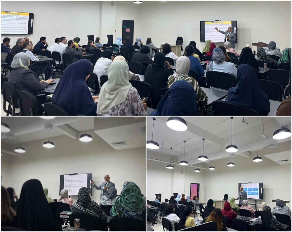 The session, conducted by Prof. Salah Eldin Kassab, engaged faculty members in an insightful discussion on the principles of constructing high-quality multiple-choice questions (MCQs) that effectively assess students’ understanding and higher-order thinking skills. The session covered best practices in question design, common pitfalls to avoid, and techniques to align MCQs with learning outcomes and assessment standards.