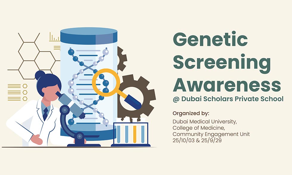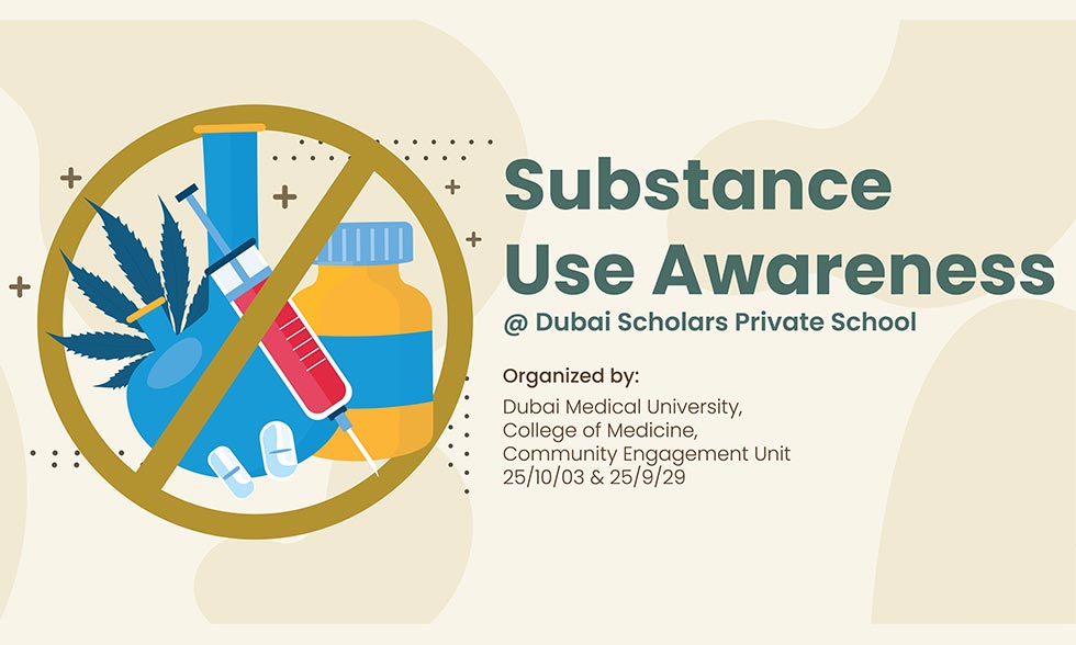 On 29 Sept & 3 Oct, the College of Medicine – Community Engagement Unit hosted sessions at Dubai Scholars Private School on genetic screening and substance use disorders. Through interactive presentations and student-led discussions, the initiative promoted awareness, prevention, and informed decision-making to empower youth for a healthier future.